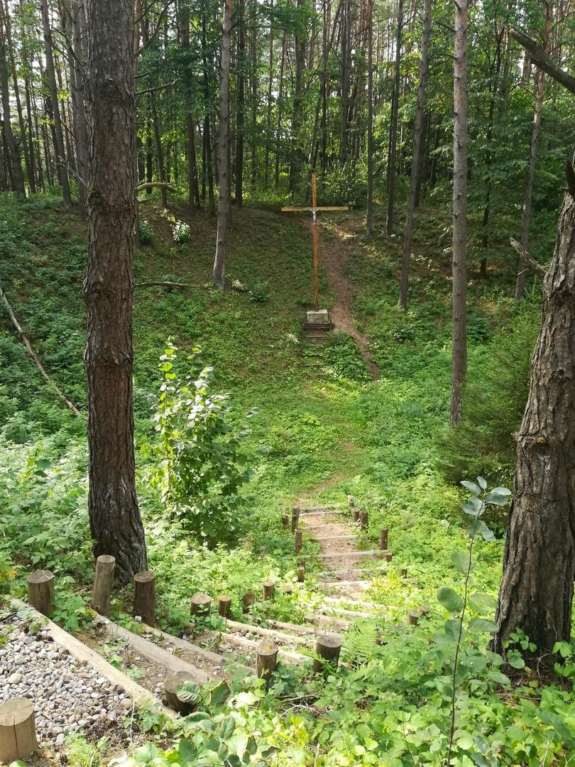 Юрьева гора – ближайшая к замку и самая высокая точка в Крево. Она сегодня состоит из двух основных элементов – широкого и узкого. Причем эта узкая вершина, вероятнее всего, имеет антропогенное происхождение, поскольку в Первую мировую войну гора служила позицией русских войск, которые с данной точки наносили удары по германским укреплениям, находящимся в Кревском замке.